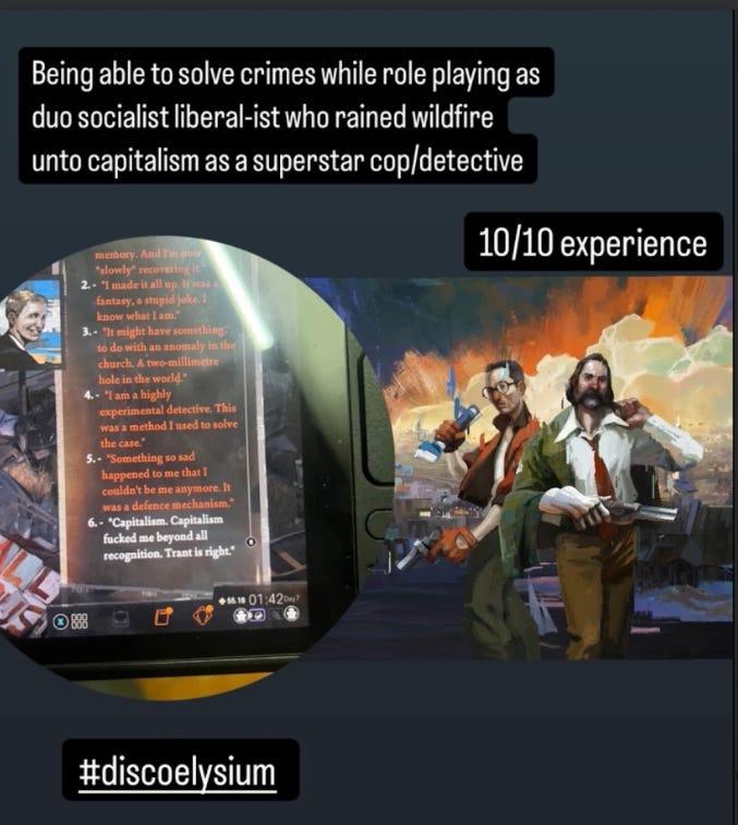 Em đã tải con game Disco Elysium. Thanks a lot for super cool activity suggestion during this Tet anh oi :>